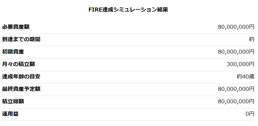 さらに下記記事で触れたとおり、ともがいは2000万円の現金を生活防衛資金として備え、残り8000万円を運用資金でカバーする生活費を320万円に抑えられた場合、いまでもFIRE可能だとわかります。
