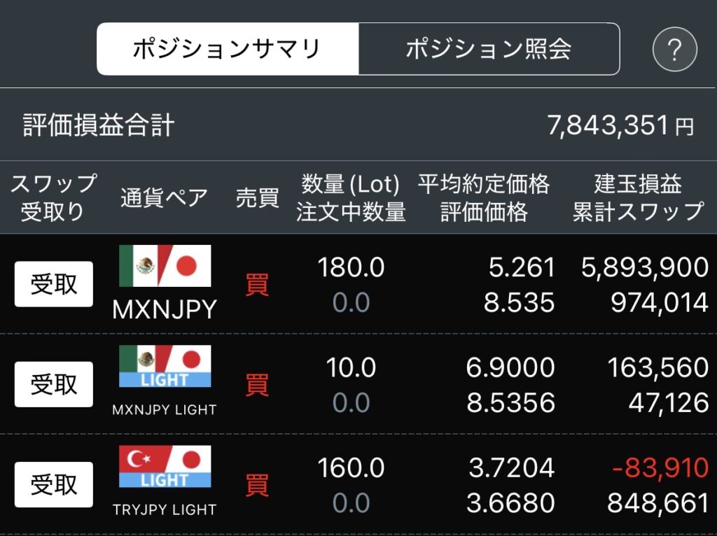 今後も得られたスワップ利益を再投資してポジションを増やして稼ごうかと考えています。