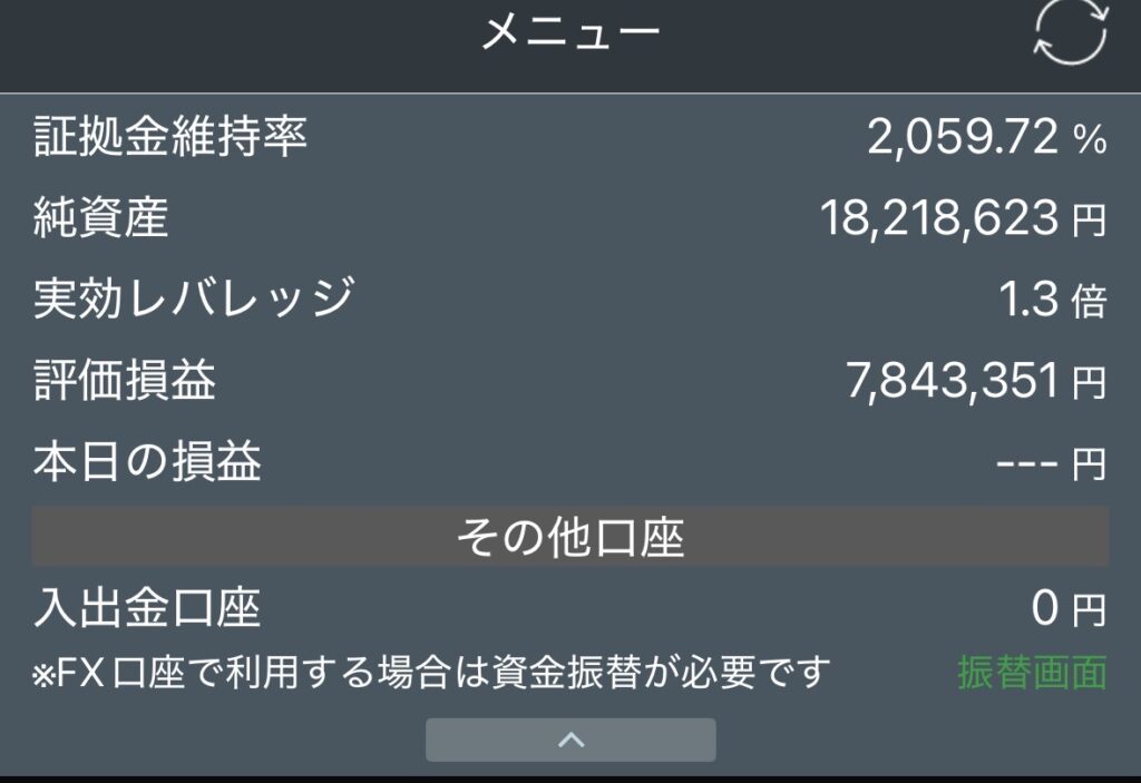 レバレッジが2倍を超えない程度のポジションを持ち、金利差であるスワップをコツコツ稼いでいます。詳しくは下記記事をご覧ください。