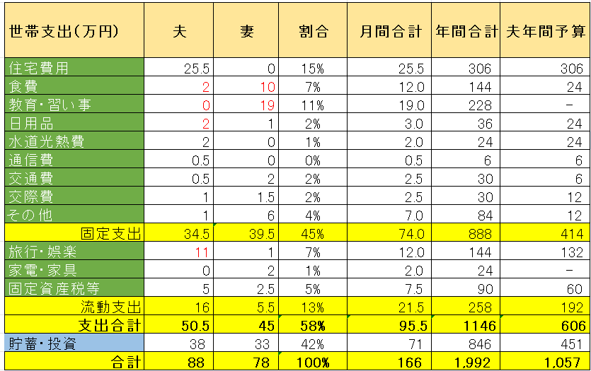 妻負担のカテゴリーとなったため、夫分としては負担減となりました。
